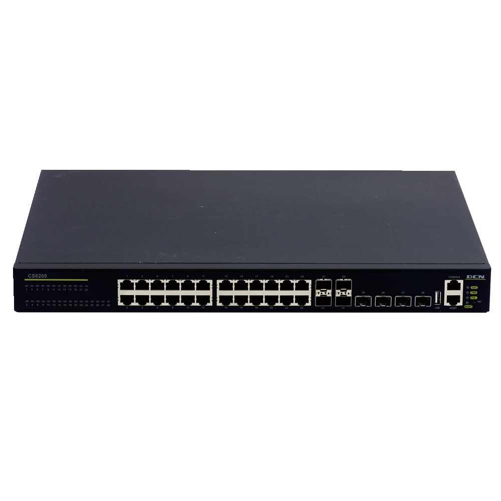 CS6200-28X-EI CS6200-28X-EI路由交换机(24个千兆以太网电口+4个复用千兆SFP光口+4个10G SFP+光口),主机内置双AC电源